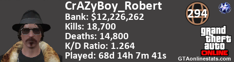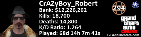 [URL=http://GTAonlinestats.com/showplayer/CrAZyBoy_Robert][IMG]http://GTAonlinestats.com/signature/CrAZyBoy_Robert/sig.png[/IMG][/URL]