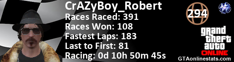 [URL=http://GTAonlinestats.com/showplayer/CrAZyBoy_Robert][IMG]http://GTAonlinestats.com/racesignature/CrAZyBoy_Robert/sig.png[/IMG][/URL]