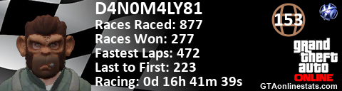 <a href="http://GTAonlinestats.com/showplayer/D4N0M4LY81"><img src="http://GTAonlinestats.com/racesignature/D4N0M4LY81/sig.png" alt="D4N0M4LY81" border="0" /></a>