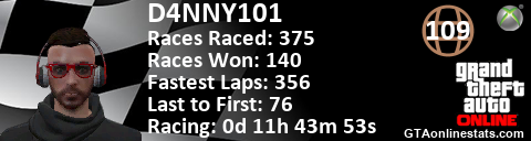 [URL=http://GTAonlinestats.com/showplayer/D4NNY101][IMG]http://GTAonlinestats.com/racesignature/D4NNY101/sig.png[/IMG][/URL]