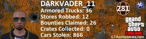 [URL=http://GTAonlinestats.com/showplayer/DARKVADER_11][IMG]http://GTAonlinestats.com/signature/DARKVADER_11/sig.png[/IMG][/URL]