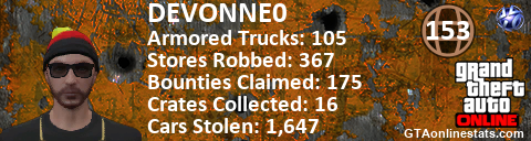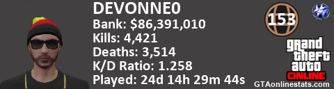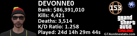 <a href="http://GTAonlinestats.com/showplayer/DEVONNE0"><img src="http://GTAonlinestats.com/signature/DEVONNE0/sig.png" alt="DEVONNE0" border="0" /></a>