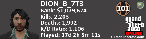 [URL=http://GTAonlinestats.com/showplayer/DION_B_7T3][IMG]http://GTAonlinestats.com/randomsignature/DION_B_7T3/sig.png[/IMG][/URL]