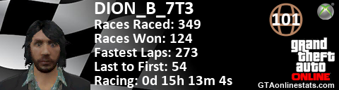 [URL=http://GTAonlinestats.com/showplayer/DION_B_7T3][IMG]http://GTAonlinestats.com/racesignature/DION_B_7T3/sig.png[/IMG][/URL]