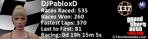 [URL=http://GTAonlinestats.com/showplayer/DJPabloxD][IMG]http://GTAonlinestats.com/racesignature/DJPabloxD/sig.png[/IMG][/URL]