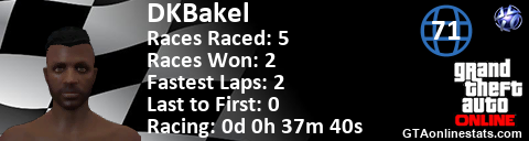 <a href="http://GTAonlinestats.com/showplayer/DKBakel"><img src="http://GTAonlinestats.com/racesignature/DKBakel/sig.png" alt="DKBakel" border="0" /></a>