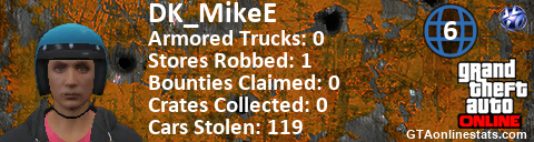[URL=http://GTAonlinestats.com/showplayer/DK_MikeE/2][IMG]http://GTAonlinestats.com/crimesignature/DK_MikeE/2/sig.png[/IMG][/URL]