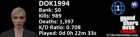 <a href="http://GTAonlinestats.com/showplayer/DOK1994/2"><img src="http://GTAonlinestats.com/signature/DOK1994/2/sig.png" alt="DOK1994" border="0" /></a>