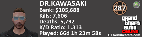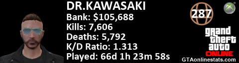 [URL=http://GTAonlinestats.com/showplayer/DR.KAWASAKI][IMG]http://GTAonlinestats.com/signature/DR.KAWASAKI/sig.png[/IMG][/URL]