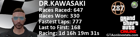 <a href="http://GTAonlinestats.com/showplayer/DR.KAWASAKI"><img src="http://GTAonlinestats.com/racesignature/DR.KAWASAKI/sig.png" alt="DR.KAWASAKI" border="0" /></a>