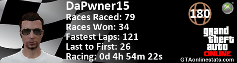 [URL=http://GTAonlinestats.com/showplayer/DaPwner15][IMG]http://GTAonlinestats.com/racesignature/DaPwner15/sig.png[/IMG][/URL]