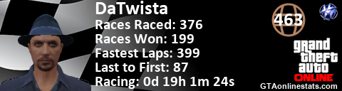 [URL=http://GTAonlinestats.com/showplayer/DaTwista][IMG]http://GTAonlinestats.com/racesignature/DaTwista/sig.png[/IMG][/URL]