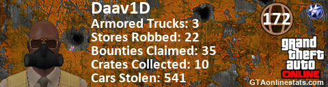 [URL=http://GTAonlinestats.com/showplayer/Daav1D][IMG]http://GTAonlinestats.com/crimesignature/Daav1D/sig.png[/IMG][/URL]