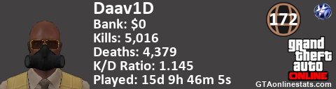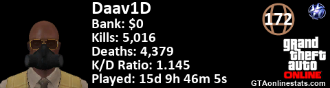 <a href="http://GTAonlinestats.com/showplayer/Daav1D"><img src="http://GTAonlinestats.com/dmsignature/Daav1D/sig.png" alt="Daav1D" border="0" /></a>
