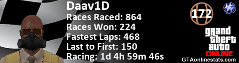 [URL=http://GTAonlinestats.com/showplayer/Daav1D][IMG]http://GTAonlinestats.com/racesignature/Daav1D/sig.png[/IMG][/URL]
