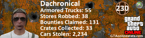 [URL=http://GTAonlinestats.com/showplayer/Dachronical][IMG]http://GTAonlinestats.com/randomsignature/Dachronical/sig.png[/IMG][/URL]