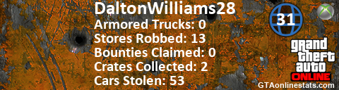 [URL=http://GTAonlinestats.com/showplayer/DaltonWilliams28][IMG]http://GTAonlinestats.com/crimesignature/DaltonWilliams28/sig.png[/IMG][/URL]