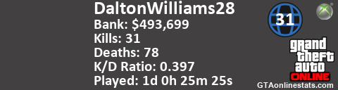 [URL=http://GTAonlinestats.com/showplayer/DaltonWilliams28][IMG]http://GTAonlinestats.com/signature/DaltonWilliams28/sig.png[/IMG][/URL]