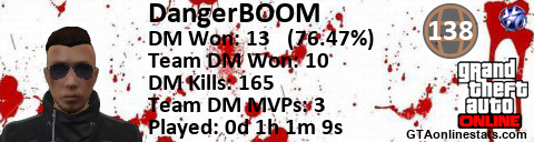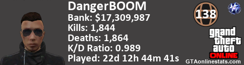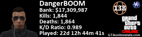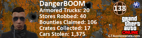 [URL=http://GTAonlinestats.com/showplayer/DangerBOOM][IMG]http://GTAonlinestats.com/dmsignature/DangerBOOM/sig.png[/IMG][/URL]