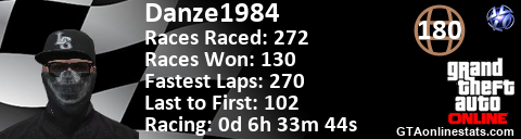 <a href="http://GTAonlinestats.com/showplayer/Danze1984"><img src="http://GTAonlinestats.com/racesignature/Danze1984/sig.png" alt="Danze1984" border="0" /></a>