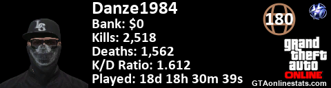 <a href="http://GTAonlinestats.com/showplayer/Danze1984"><img src="http://GTAonlinestats.com/signature/Danze1984/sig.png" alt="Danze1984" border="0" /></a>