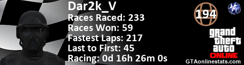 [URL=http://GTAonlinestats.com/showplayer/Dar2k_V][IMG]http://GTAonlinestats.com/racesignature/Dar2k_V/sig.png[/IMG][/URL]