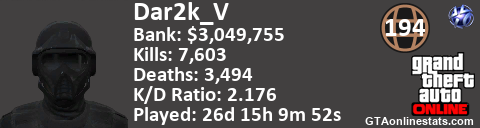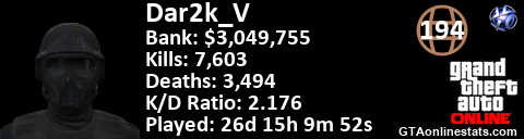 <a href="http://GTAonlinestats.com/showplayer/Dar2k_V"><img src="http://GTAonlinestats.com/randomsignature/Dar2k_V/sig.png" alt="Dar2k_V" border="0" /></a>