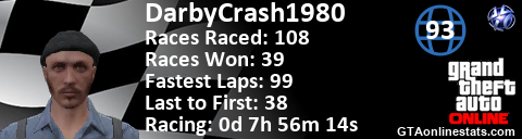 [URL=http://GTAonlinestats.com/showplayer/DarbyCrash1980][IMG]http://GTAonlinestats.com/racesignature/DarbyCrash1980/sig.png[/IMG][/URL]