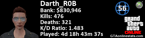 <a href="http://GTAonlinestats.com/showplayer/Darth_R0B/2"><img src="http://GTAonlinestats.com/signature/Darth_R0B/2/sig.png" alt="Darth_R0B" border="0" /></a>