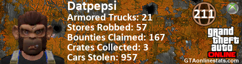 <a href="http://GTAonlinestats.com/showplayer/Datpepsi"><img src="http://GTAonlinestats.com/randomsignature/Datpepsi/sig.png" alt="Datpepsi" border="0" /></a>
