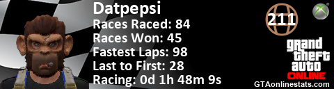 <a href="http://GTAonlinestats.com/showplayer/Datpepsi"><img src="http://GTAonlinestats.com/racesignature/Datpepsi/sig.png" alt="Datpepsi" border="0" /></a>