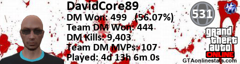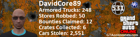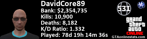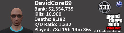 [URL=http://GTAonlinestats.com/showplayer/DavidCore89][IMG]http://GTAonlinestats.com/signature/DavidCore89/sig.png[/IMG][/URL]