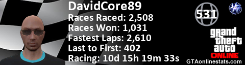 [URL=http://GTAonlinestats.com/showplayer/DavidCore89][IMG]http://GTAonlinestats.com/racesignature/DavidCore89/sig.png[/IMG][/URL]