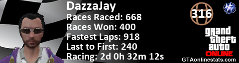 [URL=http://GTAonlinestats.com/showplayer/DazzaJay][IMG]http://GTAonlinestats.com/racesignature/DazzaJay/sig.png[/IMG][/URL]