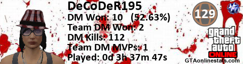 <a href="http://GTAonlinestats.com/showplayer/DeCoDeR195/2"><img src="http://GTAonlinestats.com/dmsignature/DeCoDeR195/2/sig.png" alt="DeCoDeR195" border="0" /></a>