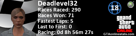 <a href="http://GTAonlinestats.com/showplayer/Deadlevel32/2"><img src="http://GTAonlinestats.com/racesignature/Deadlevel32/2/sig.png" alt="Deadlevel32" border="0" /></a>