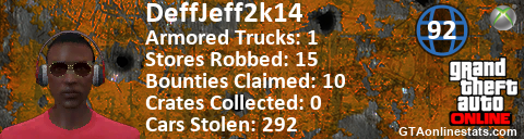 [URL=http://GTAonlinestats.com/showplayer/DeffJeff2k14][IMG]http://GTAonlinestats.com/crimesignature/DeffJeff2k14/sig.png[/IMG][/URL]