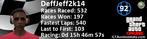 <a href="http://GTAonlinestats.com/showplayer/DeffJeff2k14"><img src="http://GTAonlinestats.com/racesignature/DeffJeff2k14/sig.png" alt="DeffJeff2k14" border="0" /></a>