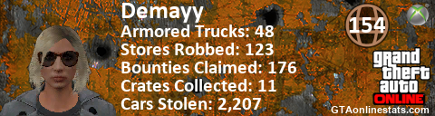 [URL=http://GTAonlinestats.com/showplayer/Demayy][IMG]http://GTAonlinestats.com/randomsignature/Demayy/sig.png[/IMG][/URL]