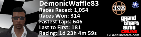 [URL=http://GTAonlinestats.com/showplayer/DemonicWaffle83][IMG]http://GTAonlinestats.com/racesignature/DemonicWaffle83/sig.png[/IMG][/URL]