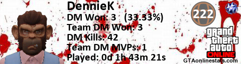 [URL=http://GTAonlinestats.com/showplayer/DennieK][IMG]http://GTAonlinestats.com/signature/DennieK/sig.png[/IMG][/URL]