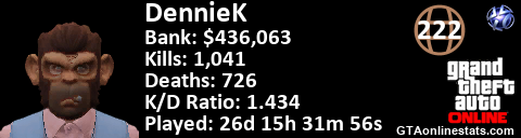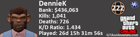 <a href="http://GTAonlinestats.com/showplayer/DennieK"><img src="http://GTAonlinestats.com/signature/DennieK/sig.png" alt="DennieK" border="0" /></a>