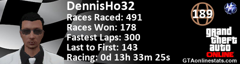 <a href="http://GTAonlinestats.com/showplayer/DennisHo32"><img src="http://GTAonlinestats.com/racesignature/DennisHo32/sig.png" alt="DennisHo32" border="0" /></a>
