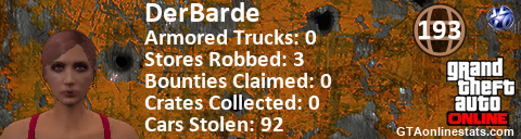 [URL=http://GTAonlinestats.com/showplayer/DerBarde][IMG]http://GTAonlinestats.com/crimesignature/DerBarde/sig.png[/IMG][/URL]