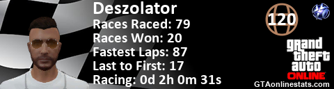 <a href="http://GTAonlinestats.com/showplayer/Deszolator"><img src="http://GTAonlinestats.com/racesignature/Deszolator/sig.png" alt="Deszolator" border="0" /></a>