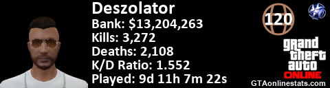 <a href="http://GTAonlinestats.com/showplayer/Deszolator"><img src="http://GTAonlinestats.com/dmsignature/Deszolator/sig.png" alt="Deszolator" border="0" /></a>