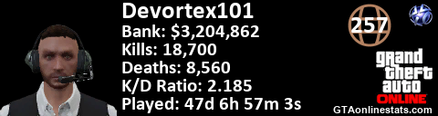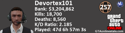 [URL=http://GTAonlinestats.com/showplayer/Devortex101][IMG]http://GTAonlinestats.com/dmsignature/Devortex101/sig.png[/IMG][/URL]