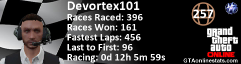 [URL=http://GTAonlinestats.com/showplayer/Devortex101][IMG]http://GTAonlinestats.com/racesignature/Devortex101/sig.png[/IMG][/URL]