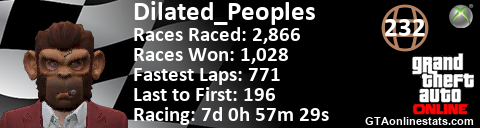 [URL=http://GTAonlinestats.com/showplayer/Dilated_Peoples][IMG]http://GTAonlinestats.com/racesignature/Dilated_Peoples/sig.png[/IMG][/URL]