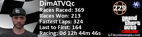 [URL=http://GTAonlinestats.com/showplayer/DimATVQc][IMG]http://GTAonlinestats.com/racesignature/DimATVQc/sig.png[/IMG][/URL]